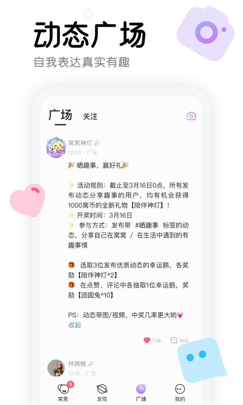 窝窝app会定期推出各种线上活动,让你有机会参与各种感兴趣的活动,结交更多志同道合的朋友。