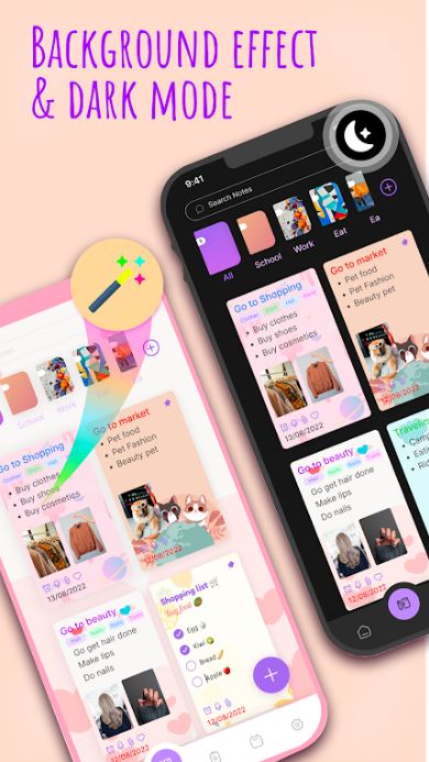 附上照片、文件、名片等。用 +100 种背景效果装饰你的笔记。