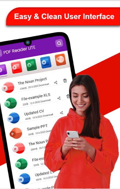 该应用程序为 PPT、DOX、XLS 和 PDF 文件提供各种查看模式。