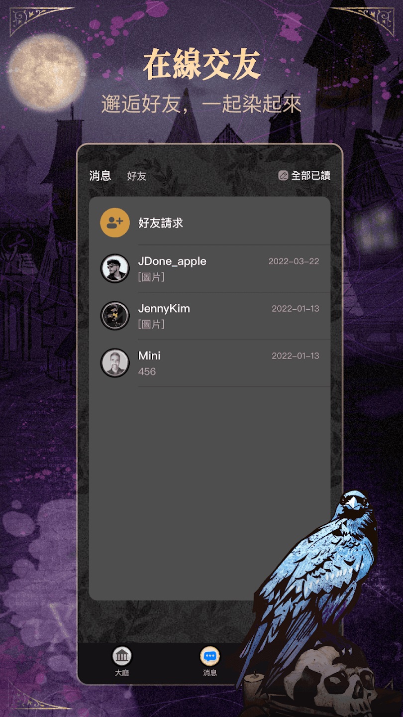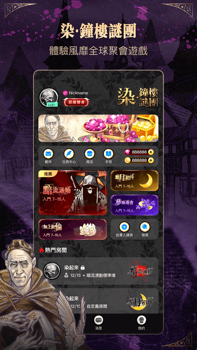 在血染钟楼中你可以体验到全球最流行的狼人杀高级玩法——血迹钟楼,与全台湾用户一起玩,线上局,哄骗推理,语音聊天,偶遇好友,感受血迹钟楼的乐趣,一起染吧!