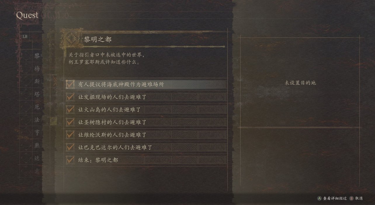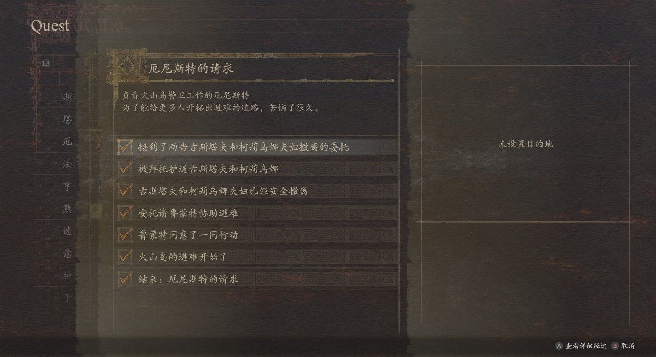 前言:一共要引导五个地方的人们前去避难,分别是挖掘现场、火山岛、圣树隐村、维纶沃斯、巴克巴达尔,笔者疏散的顺序是挖掘现场→火山岛→圣树隐村→维纶沃斯→巴克巴达尔,考虑到有的朋友没有做精灵村的支线,如果想要补救的话,可以把巴克巴达尔留在最后疏散。