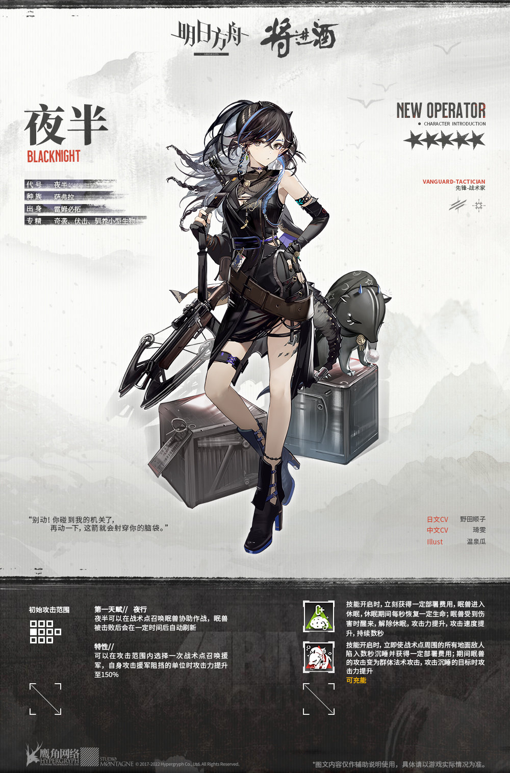 夜半,在荒野中成长起来的赏金猎人,于大炎境内某办事处完成登记,成为罗德岛合作干员。