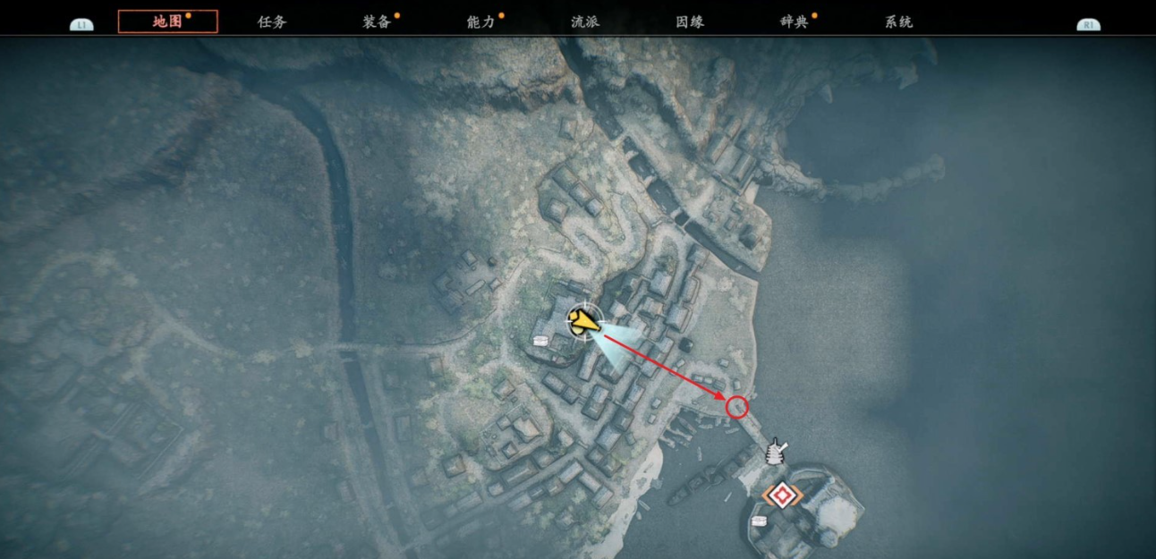 开局先按照下图路线进入镇子中,终点位置有一个高手可以击败。