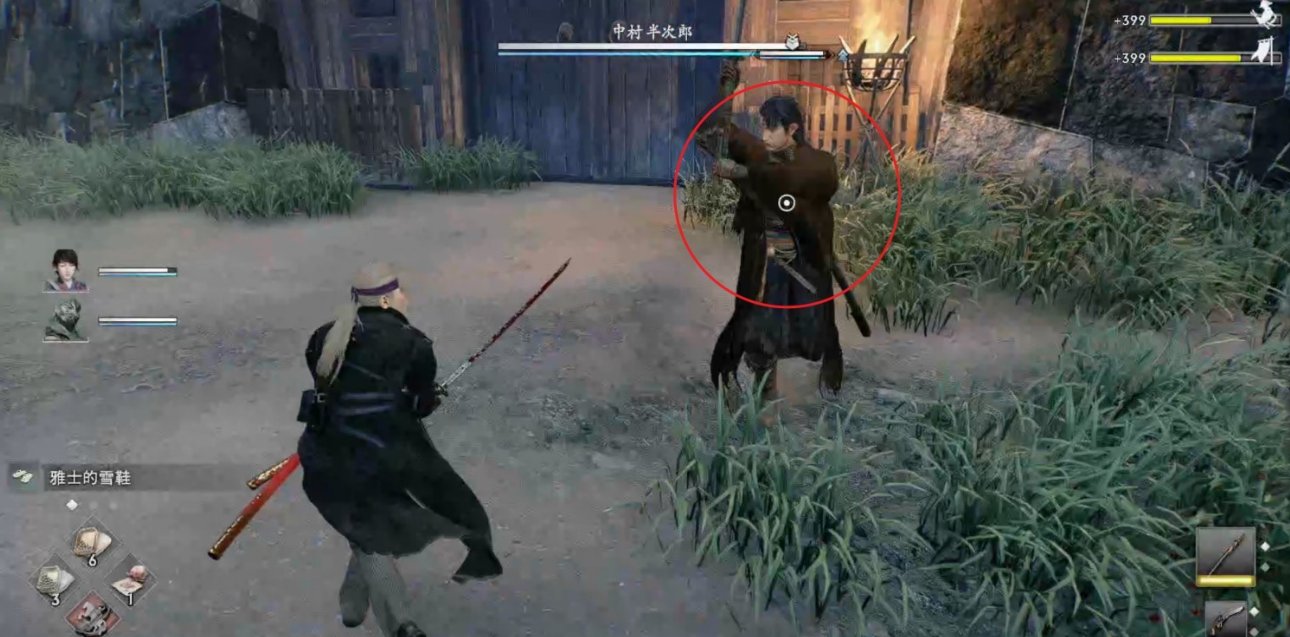 来到门的旁边触发剧情,中村半次郎会出来与我们战斗。