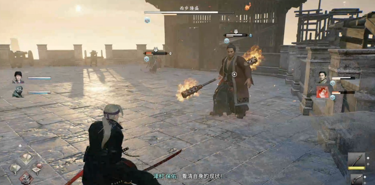 与西乡隆盛战斗,西乡隆盛的招式没有改变,按照之前的套路再次将其击败。