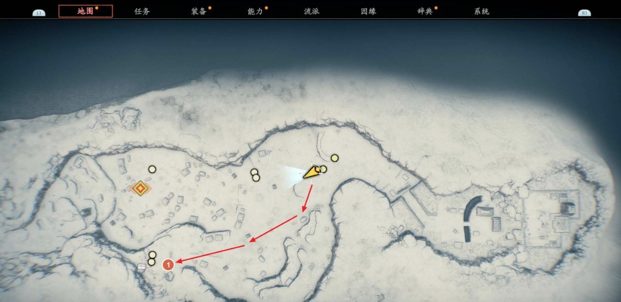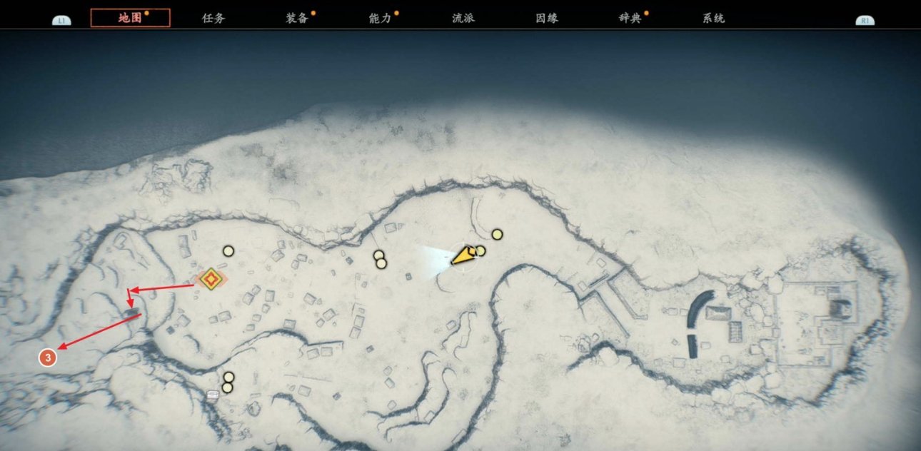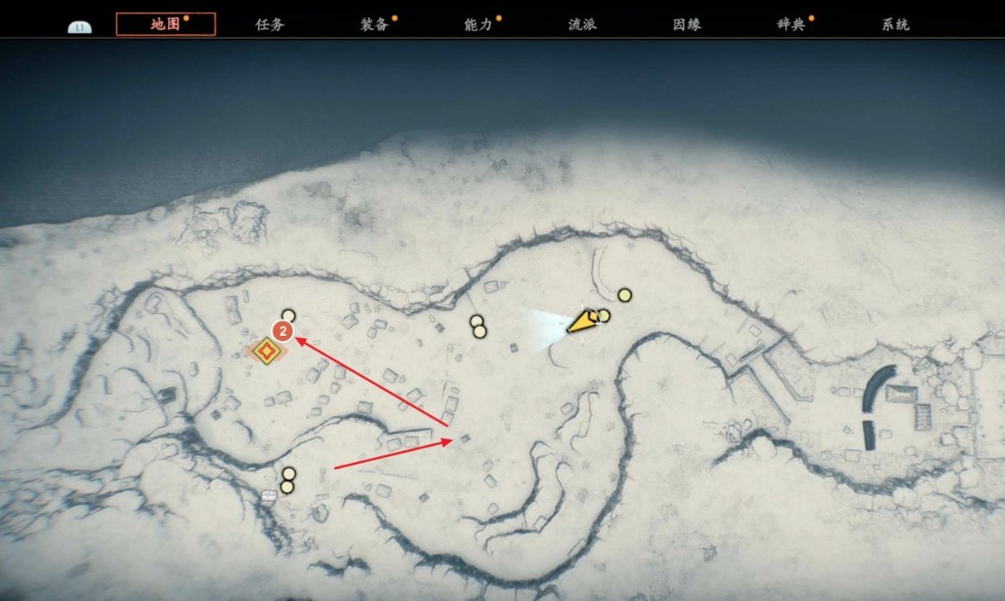 将俩人击败后从编号2的位置按照下图所示的路径移动到编号3的位置。
