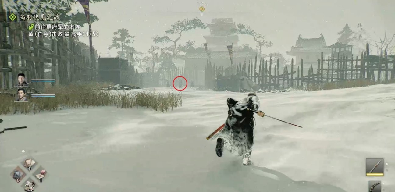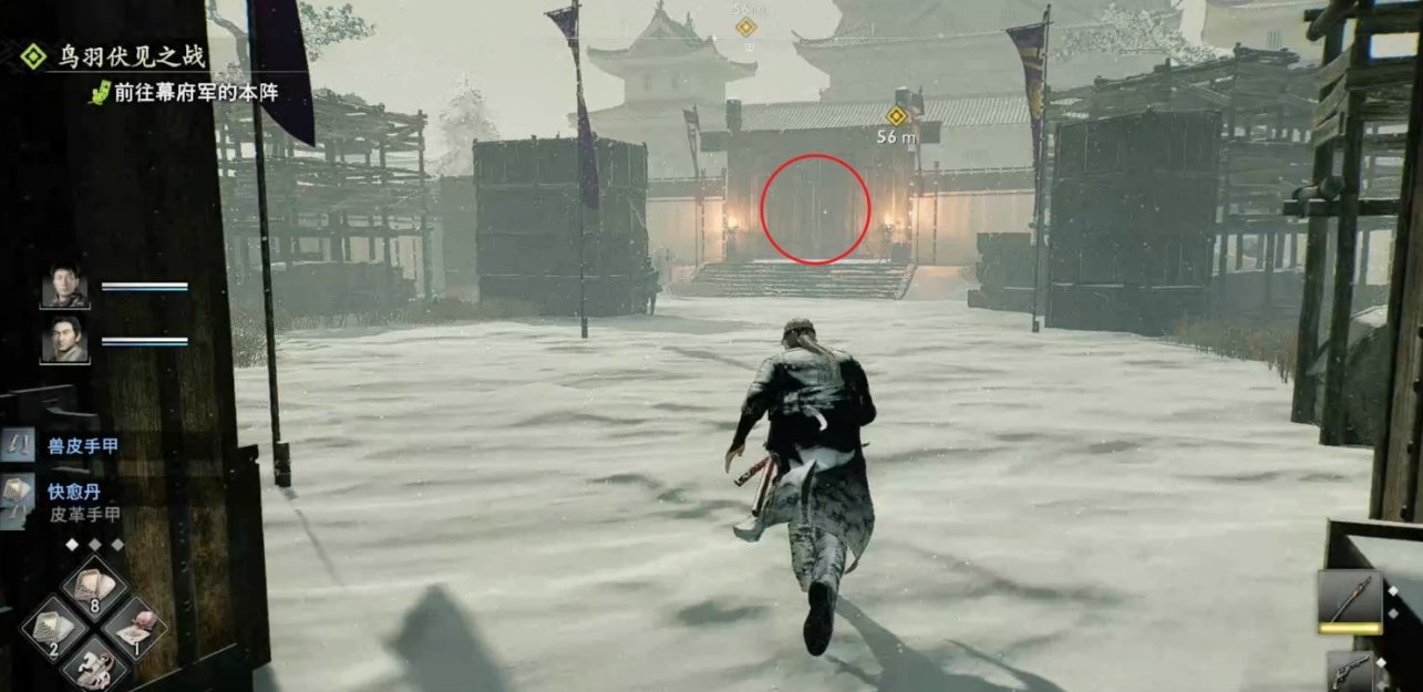 首先移动到此处,NPC八郎与土方岁三都在此处需要击败。