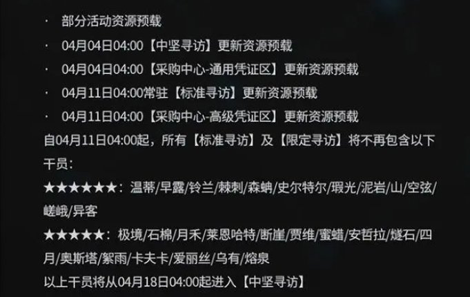 明日方舟游戏里面现在一般来说都是分为三个卡池的,一个是活动卡池,一个常驻寻访卡池,一个是中坚寻访卡池,三个卡池的规则是不互通的,最近官方对中坚卡池进行了改动,下面就让我们来看看明日方舟4月中坚卡池变动介绍。