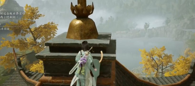 2、从侧面房顶跳上塔顶,如果这个时候雨停了我们只能下次再来。