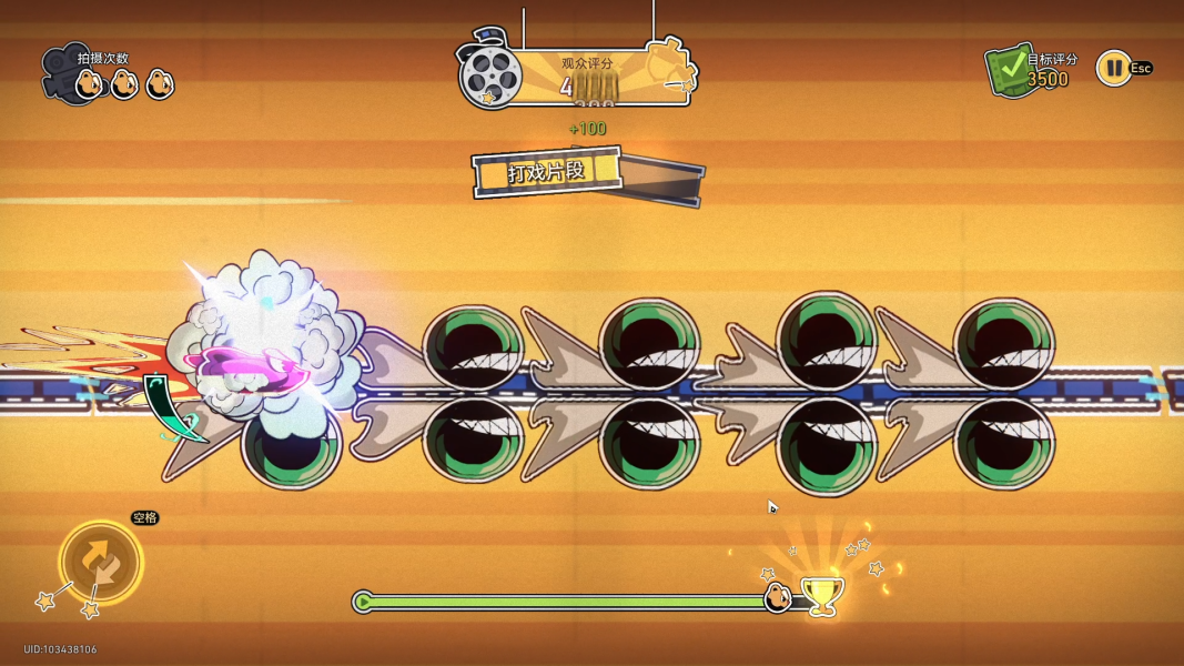 然后会出现大片敌人,狂按空格,尽量多的撞击敌人,即可完成成就
