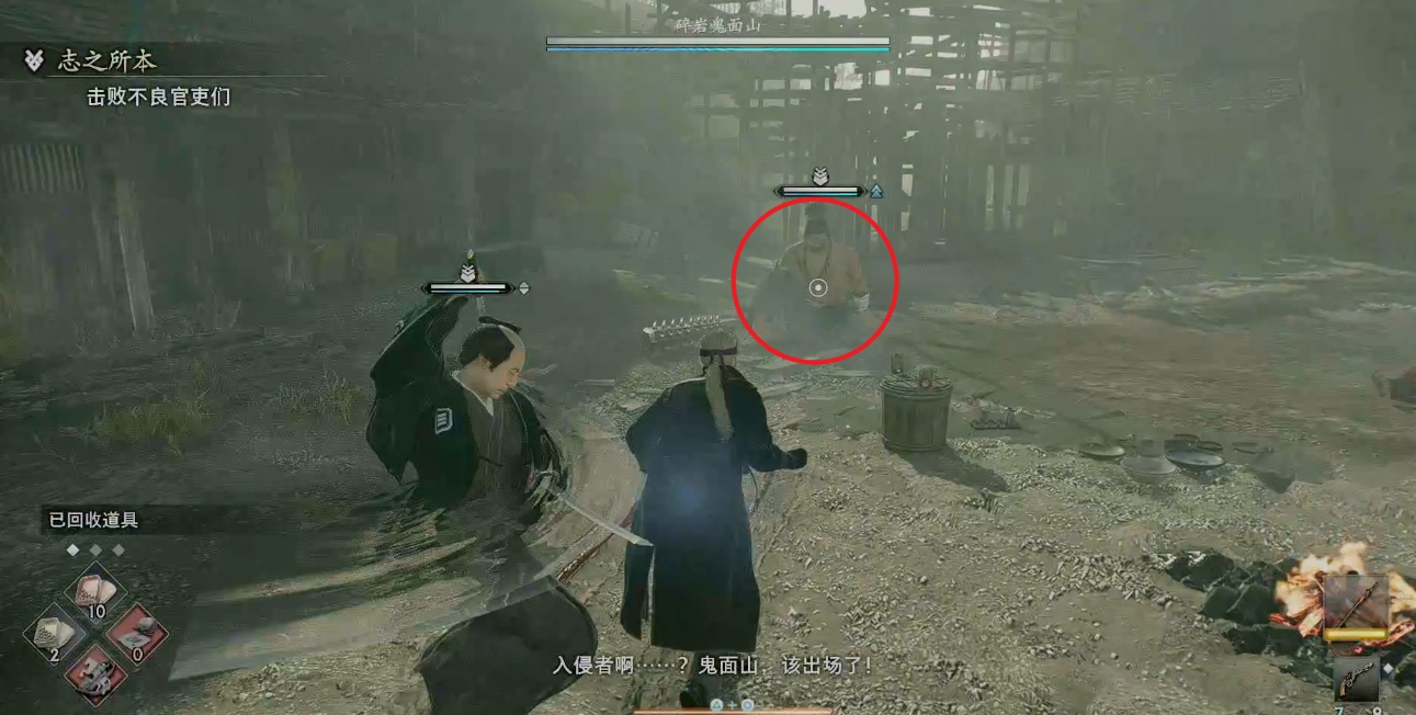 发现以前在监狱打过的碎岩鬼面山在这里,攻击方式与之前一样,将这里的敌人击败,会将我们传送到艺伎的位置。