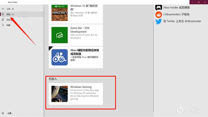 2.下载后打开,选择 “预览” 加入Windows Gaming
