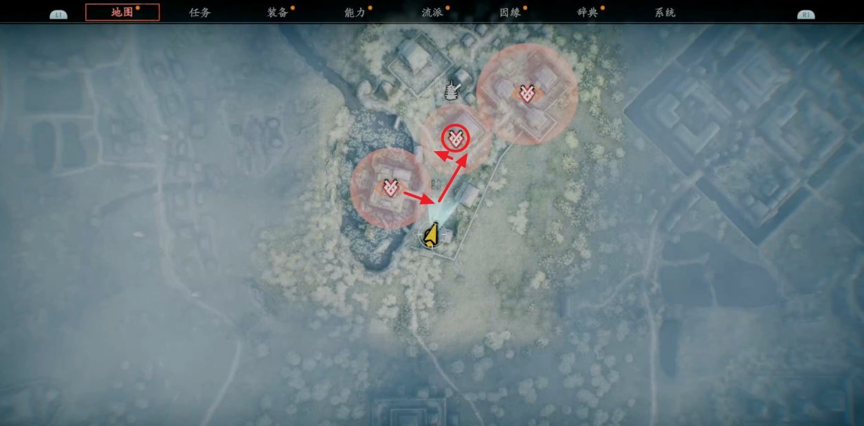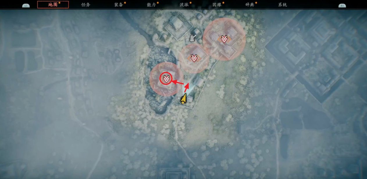 随后查看地图确认刚出现的目标地点,按照下图路线走。