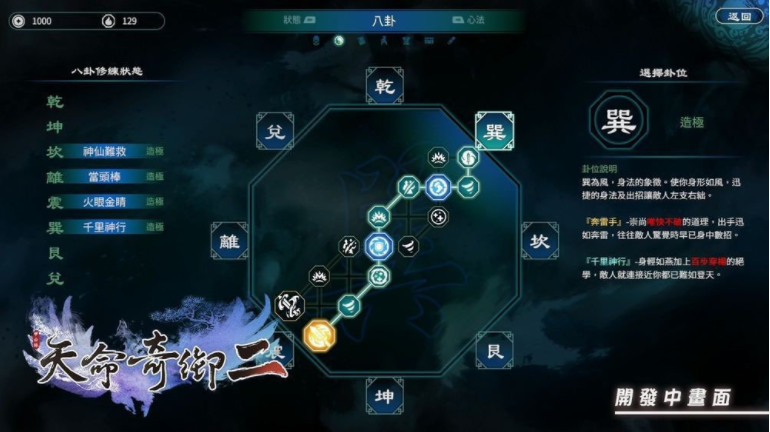除了独有的八卦系统外,天命奇御二的特色也是非常多的,我归纳下来用三句话来形容无接缝地图自在遨游江湖”、流畅实时战斗 顶尖武学随心搭配、推理解谜 探索蛛丝马迹”,期待玩家们能进入游戏后亲自去体验。