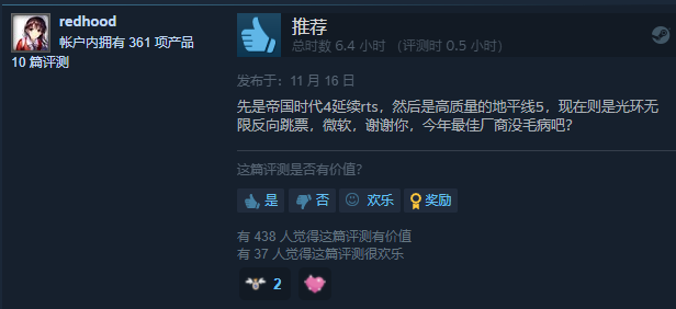 玩家大赞微软和343,表示比起近来的两款FPS大作,光环无限的及时出现安抚了大家的心,是真的巨硬。