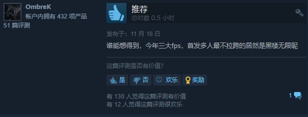 截至11.16,光环无限多人游戏测试版的Steam玩家好评率为72%。