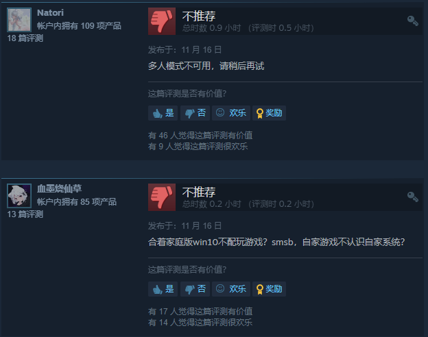 不过也有玩家遇到了多人模式无法进入、连不上的问题,还有吐槽画面配不上配置的。