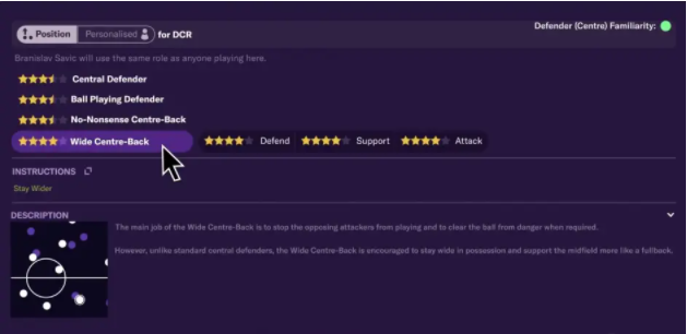 However, unlike standard central defenders, the Wide Centre-Back is encouraged to stay wide in possession and support the midfield more like a fullback.