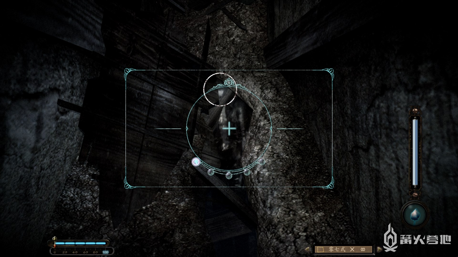 钻过一个破洞后前面有扇紧锁的门,但我们没有钥匙。举起射影机对准门锁,会听到“咔咔”的声音提示,拍摄后入手一张照片。