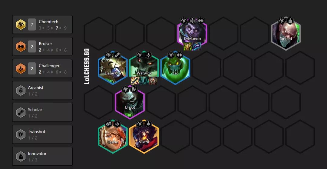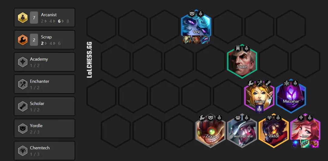 阵容组成:吉格斯、崔斯特、斯维因、薇古丝、马尔扎哈、维克托、迦娜