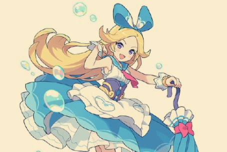 4、爱丽丝,水系高血量buff队长。 自身高血量(80%)时增伤达到140%,主动技能可以提供浮游效果对抗重力场和强风,作为队长时输出非常可观。作为队员时伤害会打折,但在需要浮游效果的场合依然十分好用。仅在需要浮游效果或浮游、高血量体系中可以充当合击角色。