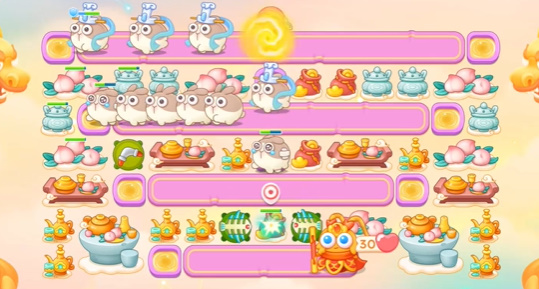 3、玩家第三波基本上都是可以完成这个阵容了,注意两边都要有一个鞭炮,主要是群体攻击。