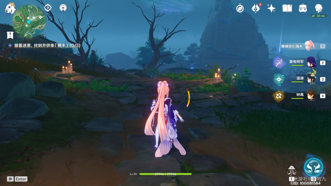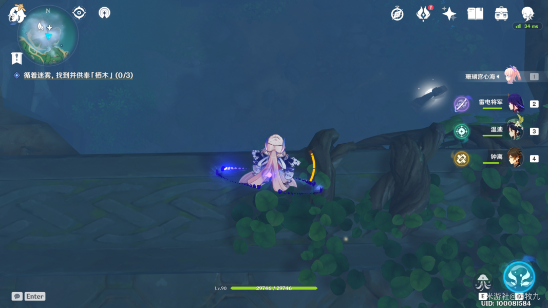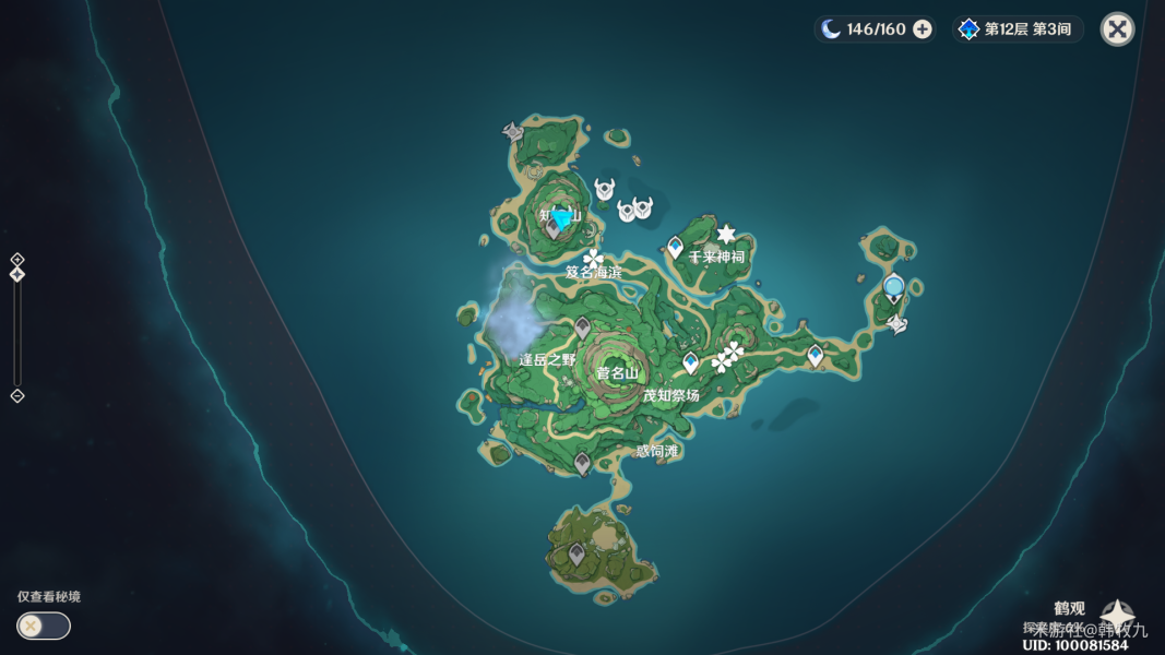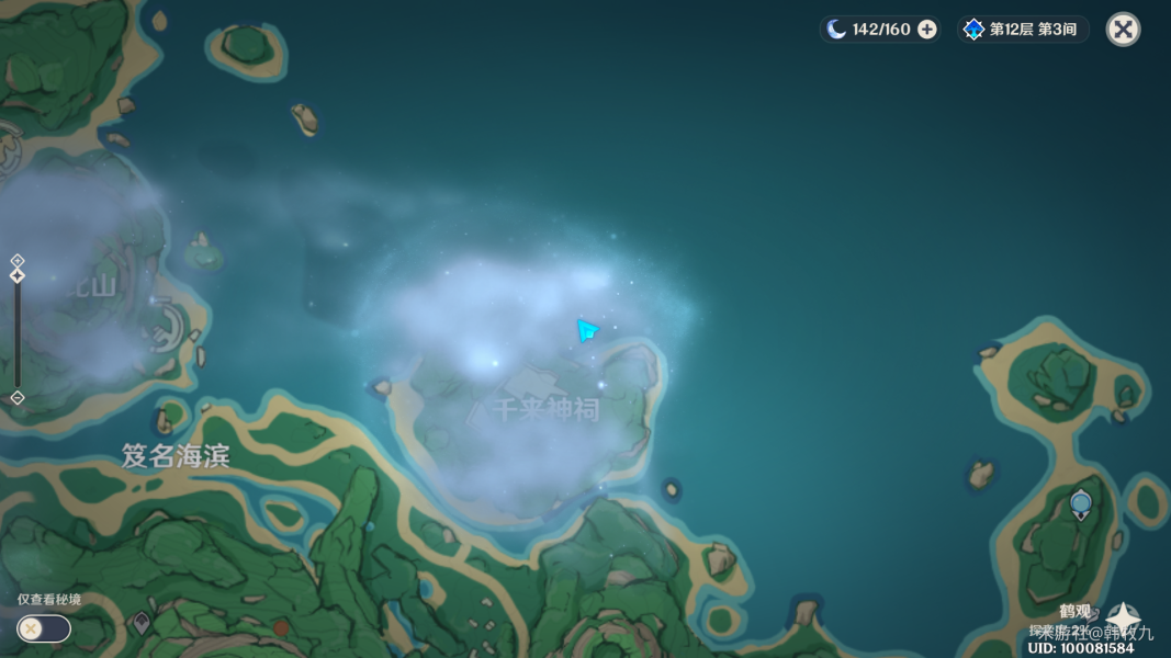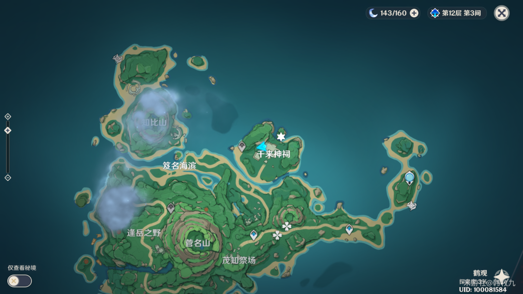 之后还是触摸【栖木】,这块的迷雾也解除了(下一个是上图上方的迷雾,建议跑图中把顺便把千来神祠左边的传送点也开了)