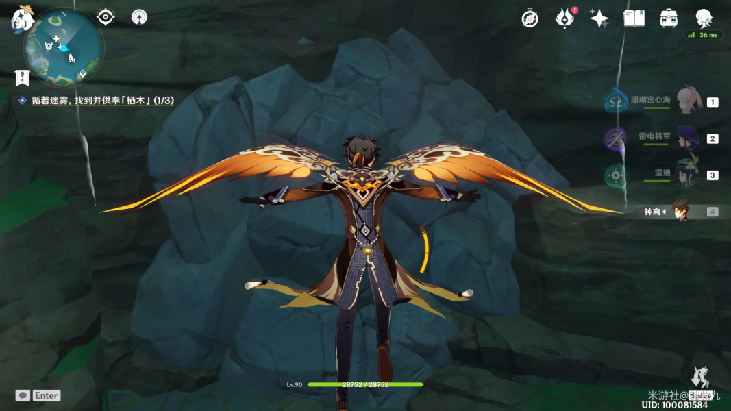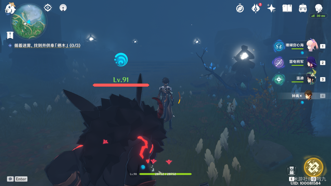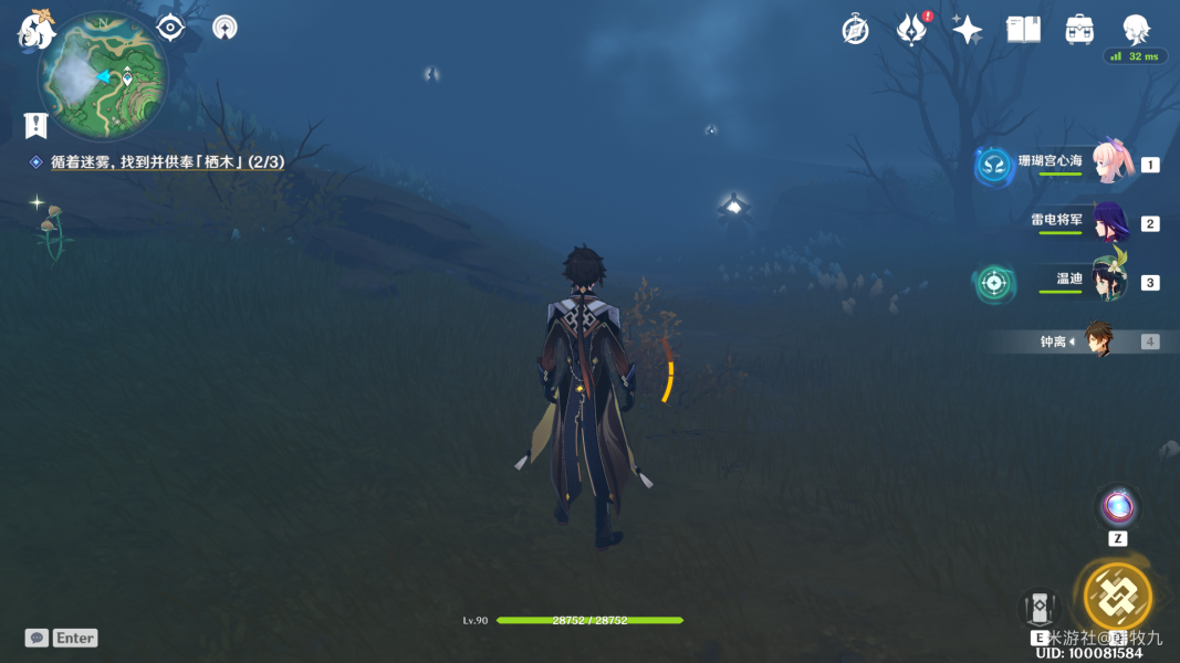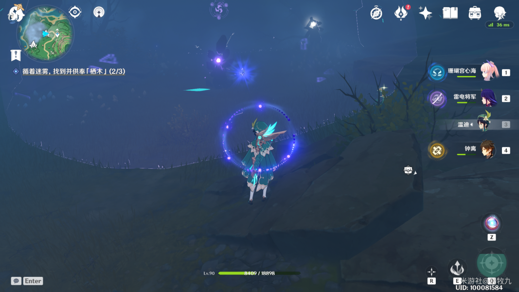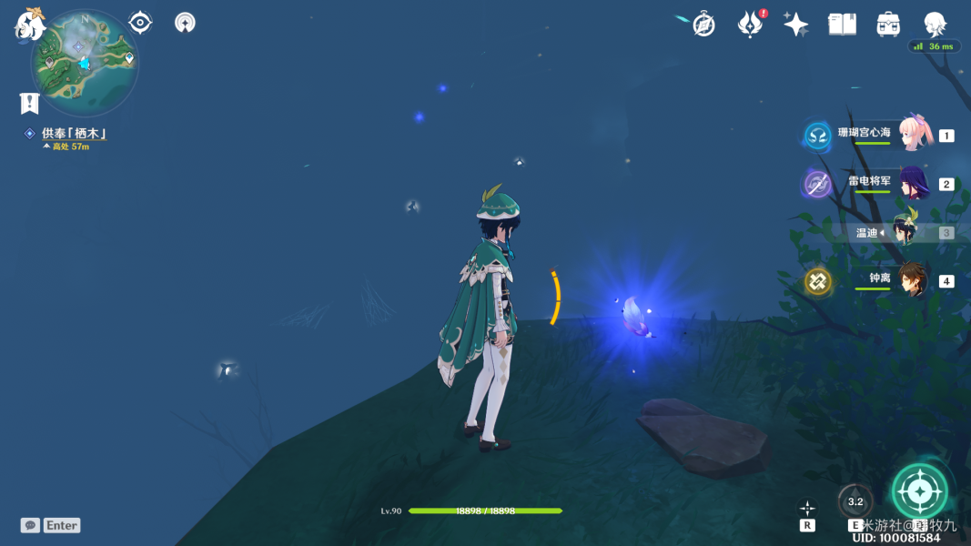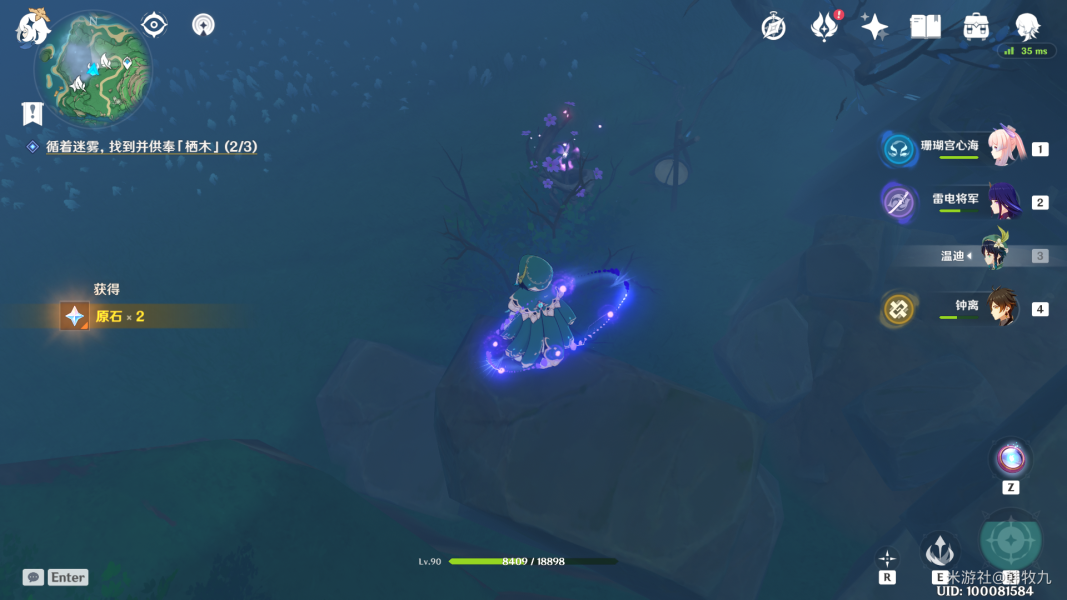 第三只在树干上,大家找不到的话可以用元素视野看一下,仙灵台会指引方向