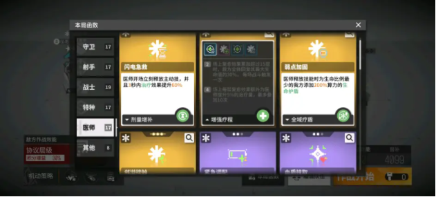 函数我们只拿增强疗程和重叠反射,有多余钱也只拿医疗护卫函数,协议除了沉默和破甲都要选。