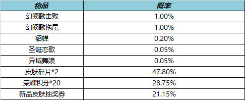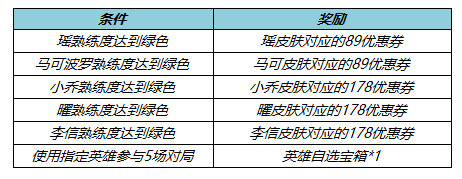 英雄自选宝箱:打开宝箱后可任意选择以下奖励之一:瑶、马可波罗、小乔、曜、李信、英雄碎片*5
