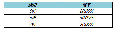 神秘商店抽到的折扣为随机概率,其概率如下: