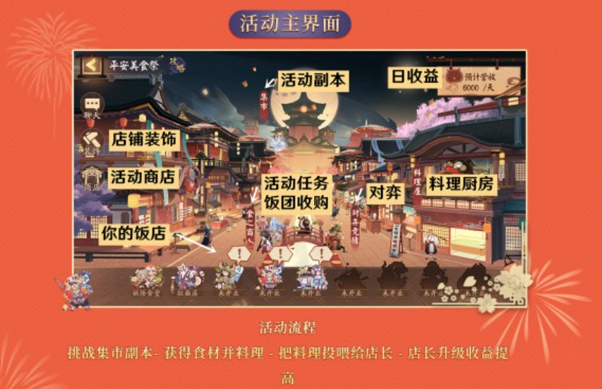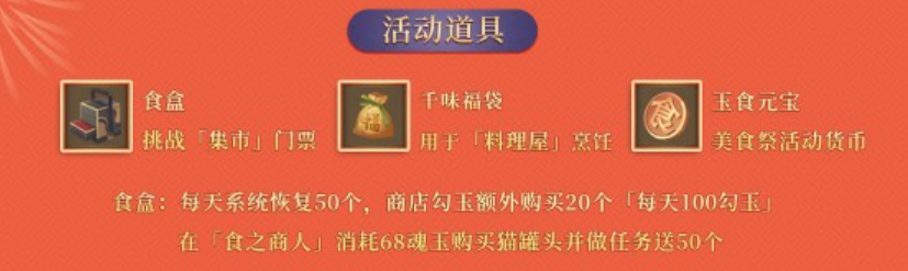 「饰品」:消耗对应料理购买,可以用来装饰美食街,活动结束会作为盱中皮肤赠送玩家