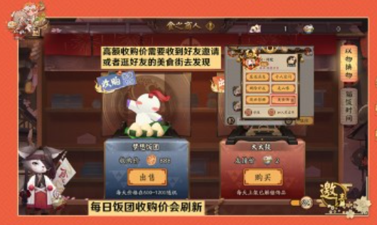 每天饭团收购价在600-1200浮动,如要出售最好找高价的好友保证收益,如果买了猫罐头会在600-1500浮动。