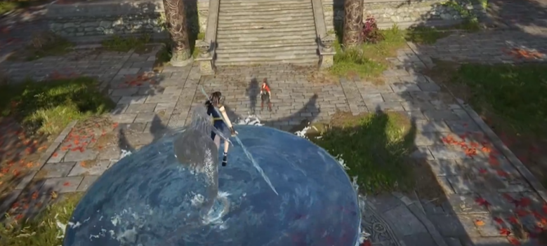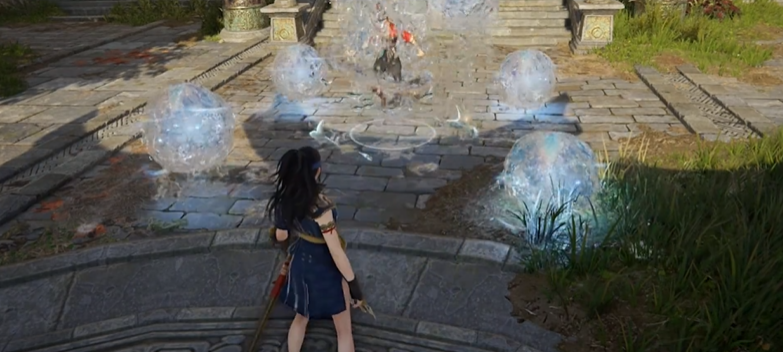 但是如果用蓄力状态撞水球是没事的如果水弹击中非霸体状态的敌人,会直接把它束缚3秒,并且会在身后以及上方分裂总共三枚的水球,这些水球同样可以束缚敌人: