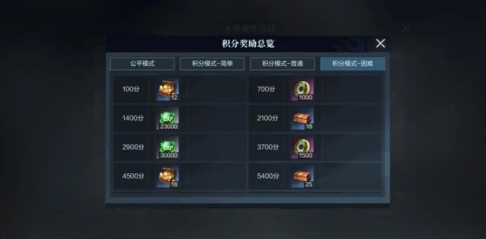 不同难度的模式,结算给到的奖励也会不同。其中公平模式只会给到经验以及祈魂诀奖励,而困难模式下,除了达到对应积分后能拿到更高的奖励外,还能够额外获得主城建材宝箱&礼器金匮奖励。