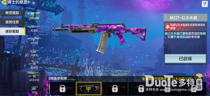 以上就是使命召唤异变围城迷彩以太水晶解锁方法的全部内容了,希望玩家可以顺利的获取迷彩以太水晶,更多精彩内容请关注多特手游。