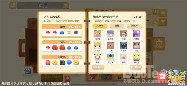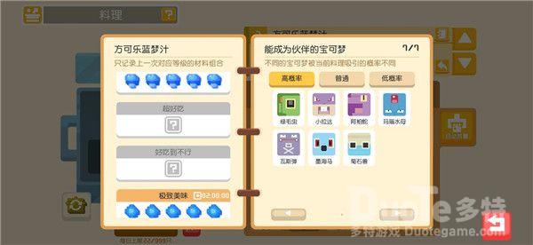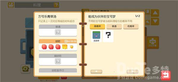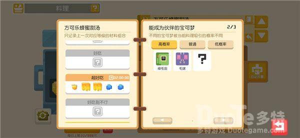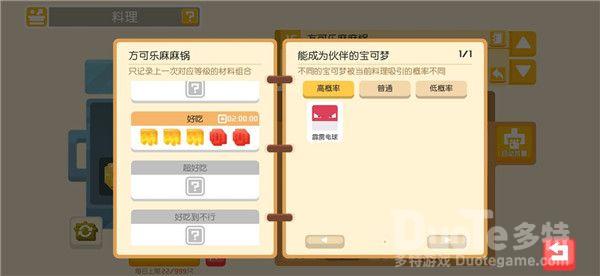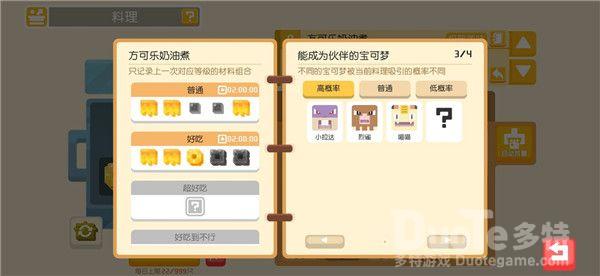食谱食谱改为和锅品质挂钩,即同材料,铁锅是好吃,铁锅是极致,变相削弱了材料稀有度,但是也无形中增加了吸引稀有宝可梦的难度
