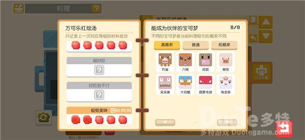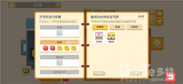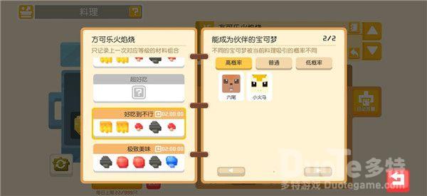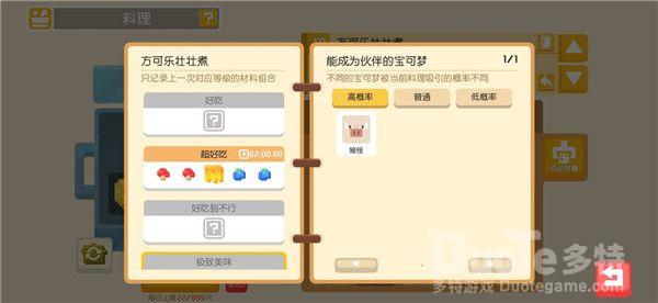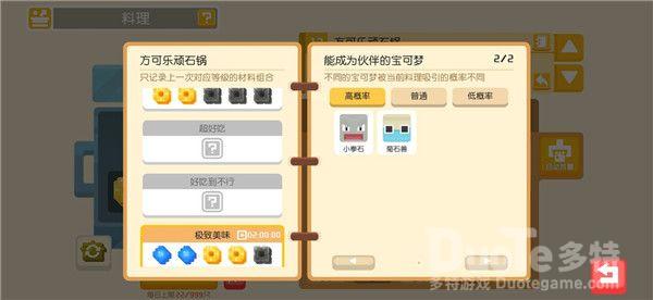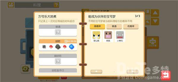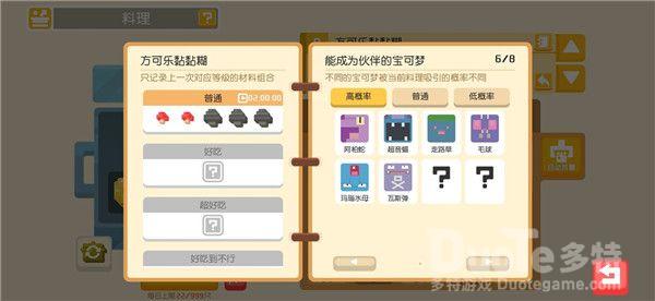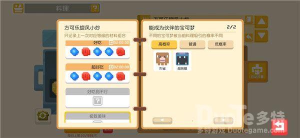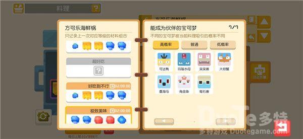 料理系统想必各位探险家们已不感陌生了,探险家们可以通过打败野生宝可梦,完成食材采集或推进主线玩法收集食材。利用材料进行烹饪,吸引宝可梦们前来大本营加入你的探险队伍。