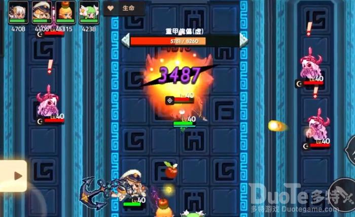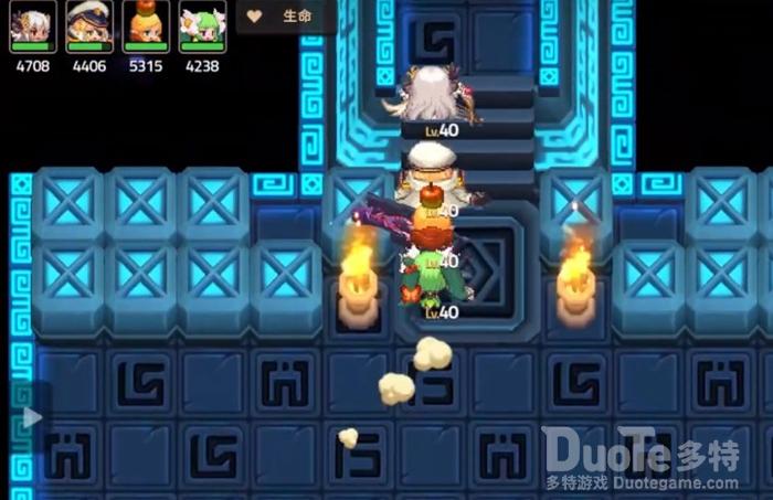 进入迷宫的第一个房间就有两个40级的怪物,击杀完毕后往上走,这个房间有两个精英怪重甲傀儡(虚),需要稍微注意一下,结束战斗之后先往右走。这个房间的怪物比较多,而且有四个怪物是分别站在四个对角的平台上的,这也是为什么我们需要携带远程射手英雄的原因。击杀所有的女哨兵之后可以看到左侧地图一个火炬已经点燃了,现在我们需要点燃第二个火炬。往右走的机关可以帮助我们快速弹跳到大厅,然后向左走,有三个40级的敌人,全部击杀后第二个火炬也就点燃了。