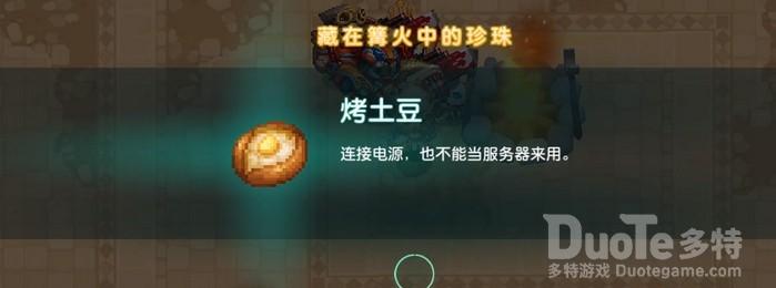 将烤土豆交给一旁趴在地下的npc,上方的机关打开,获得黄碎片。