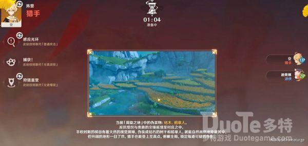 (1)原神版躲猫猫,匹配时,玩家被随机分成「游侠」和「猎手」两个阵营,「游侠」躲藏,「猎手」抓捕。