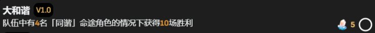 条件:队伍有4名同谐命途角色,完成10次战斗胜利。