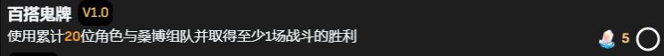 条件:累计使用20位角色与桑博组队并战斗胜利1场。
