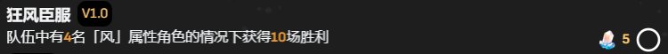 条件:队伍有4名风属性角色,完成10次战斗胜利。
