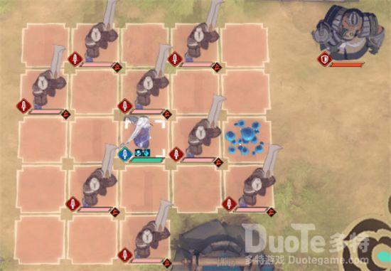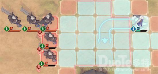 第一回合:先动冰璃,移动(滑铲过去)到如图位子,然后再动霍雍,停在冰璃旁边(如图,给冰璃加上buff)放aoe(一定要放不然冰璃的定魂会被提前触发),冰璃的执剑奉行技能是完成成就的关键,这样第一回合4头狼任务完成。
