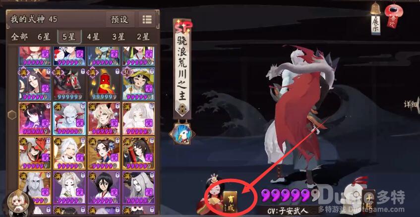 2、任意挑选一个式神,点击育成;
