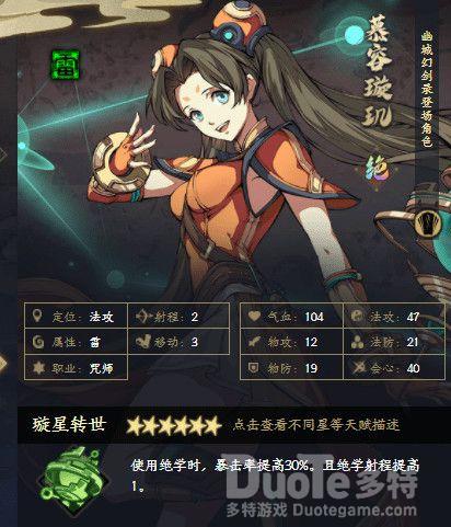 雷系最强咒师,暴击率最高的咒师,天赋自带射程+1,自带雷系战阵,满星天赋+被动+战阵拥有高达65%暴击率。要不是因为男主是雷系,开局送雷系御风,活动送雷系剑客,她的排名会更加靠前。慕容璇玑强大就是在于简单粗暴的伤害高,无论单体还是aoe伤害都很可怕,自身还可以利用反复横跳来玩许多有趣的操作。