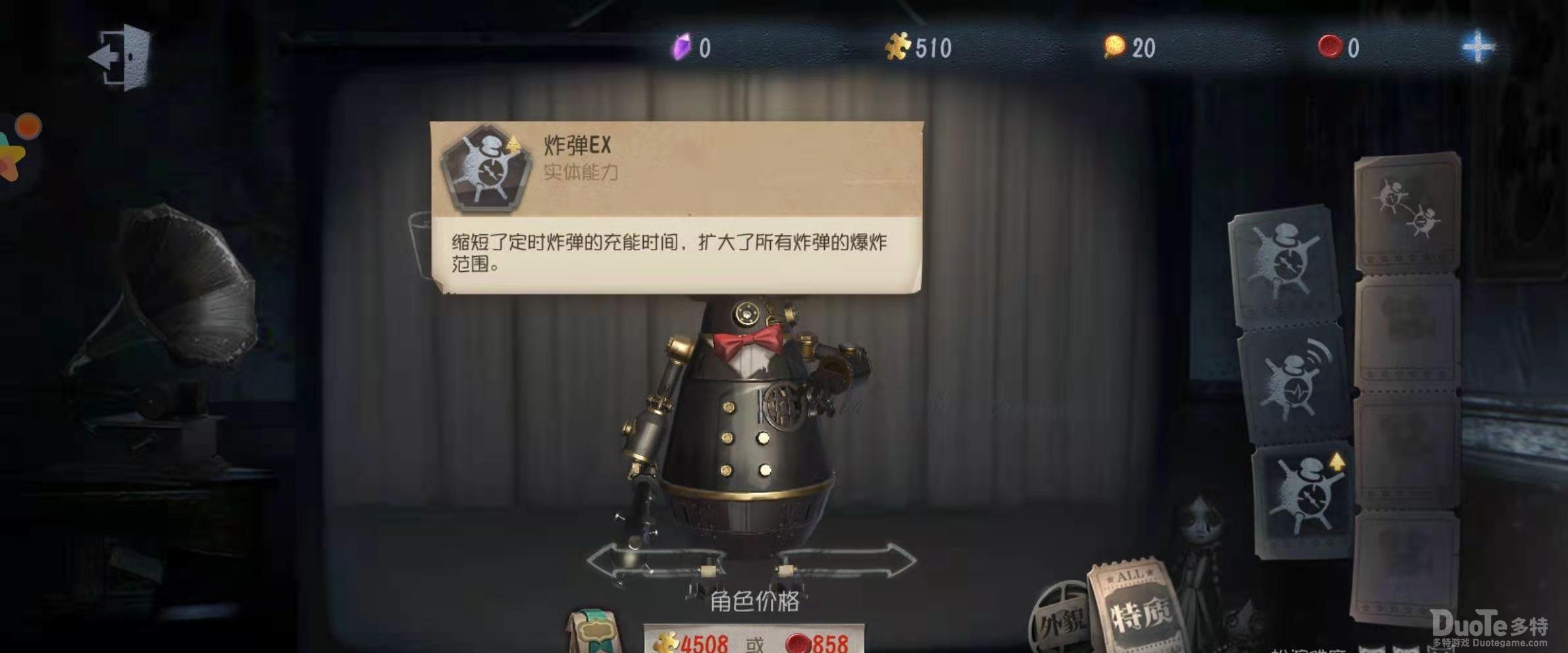 26号守卫可以储存炸弹,爆炸范围是十字型,爆炸炸弹的爆炸范围有其他炸弹则会一起引爆,但是同一次爆炸求生者只会受到一次伤害。