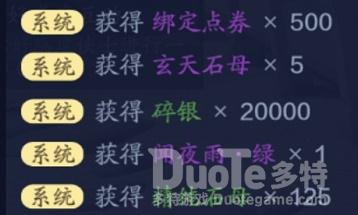 完成所有锦鲤任务之后,可以获得500绑定点券、5个玄天石母、2万碎银和配饰闻夜雨·绿。