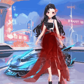 红色头套如岩浆般夺目,彰显帅气,一袭黑色西装,尽显沉稳与庄重;黑色波浪长发随风飘动,红色发饰凸显魅力风情,轻纱红色长裙尽情展现优雅浪漫风情。